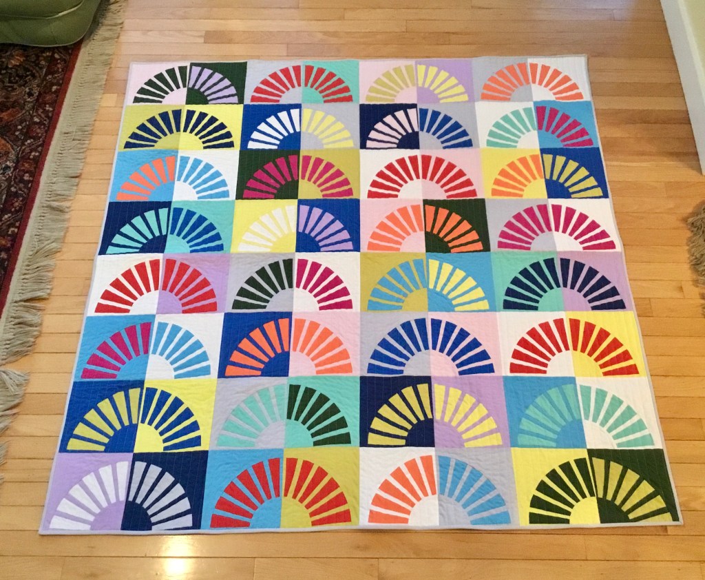 Tara Faughnan designed Traverse and Sewtopia hosted the project, which ran as a block-of-the-month project, starting early fall last year. I chose this version, made with Windham’s Artisan Cottons (shot cottons). Those fabrics…glow. As usual, when I work with Tara Faughnan, I learn so much. And I continue to love her design work.