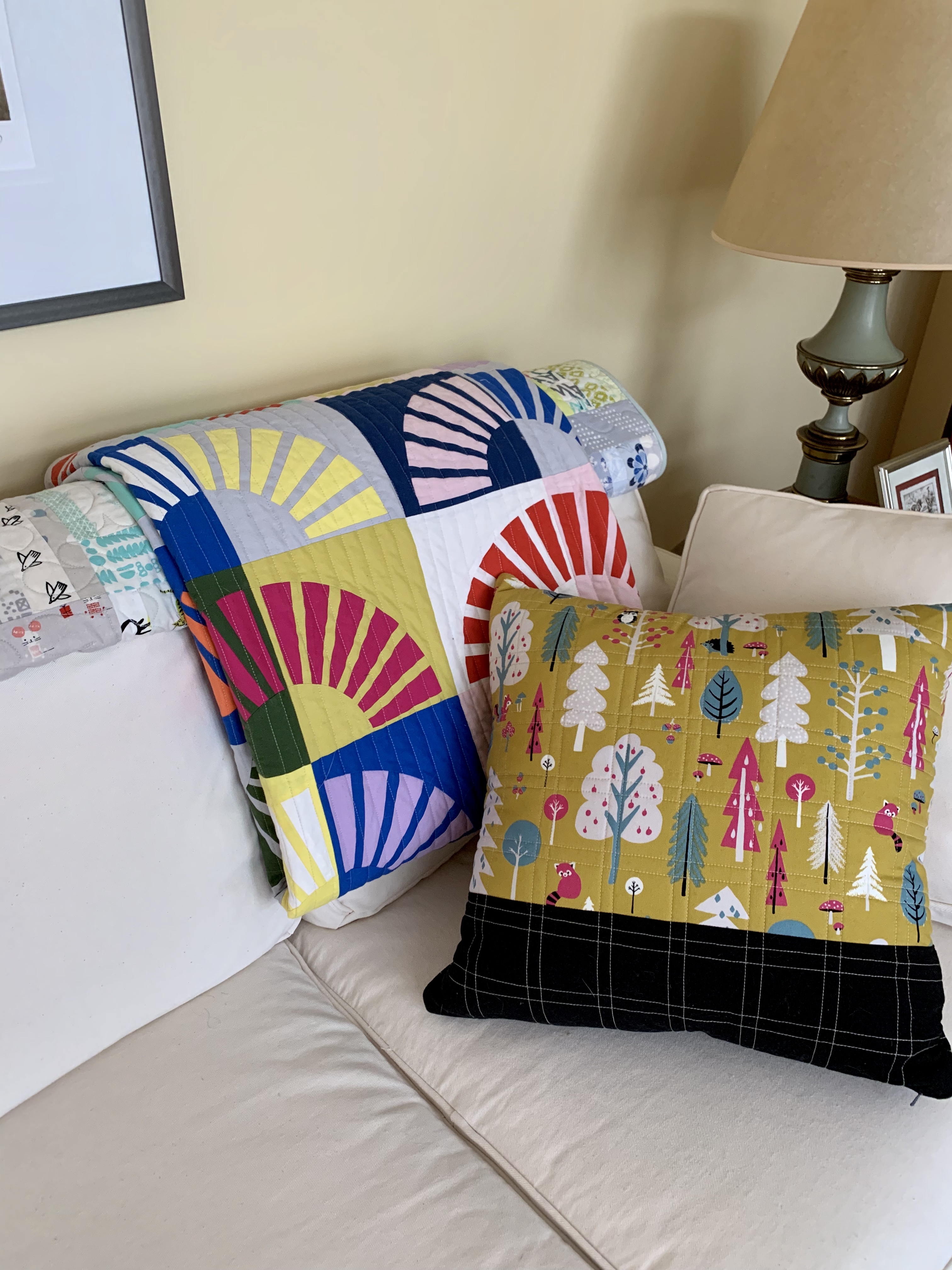 Somehow I’ve never learned the trick of getting my cell phone NOT to distort a quilt picture so the bottoms always look like they are not as wide as the tops.