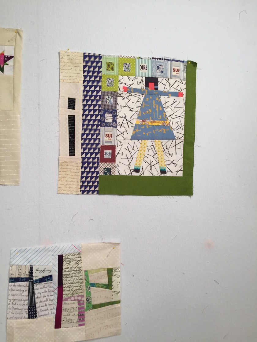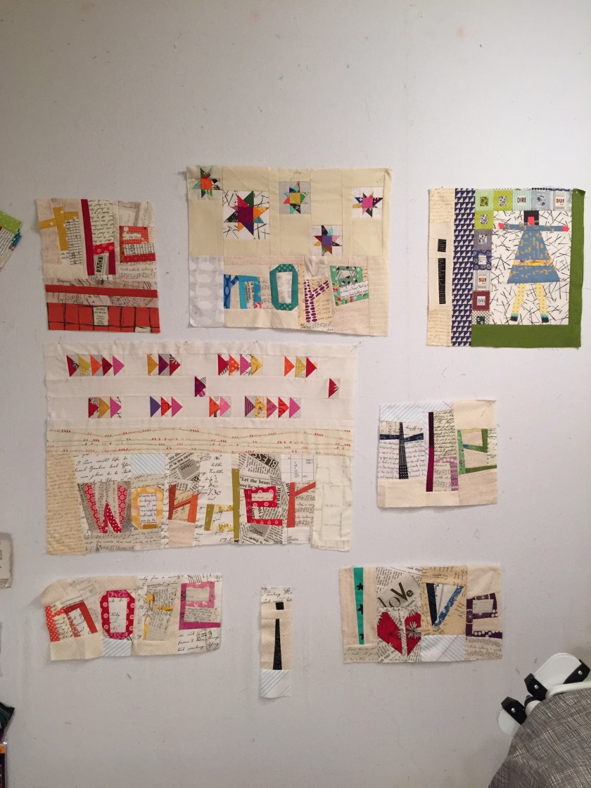 The first month’s block was the circle; the second, the cross.  I combined them as clearly I got obsessed and couldn’t stop making them.  Note the two projects at the top of the design wall.