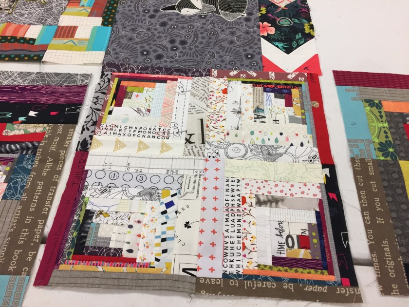 Right now I am working on the “parts department” improv quilt.  See the earlier post on this quilt project.