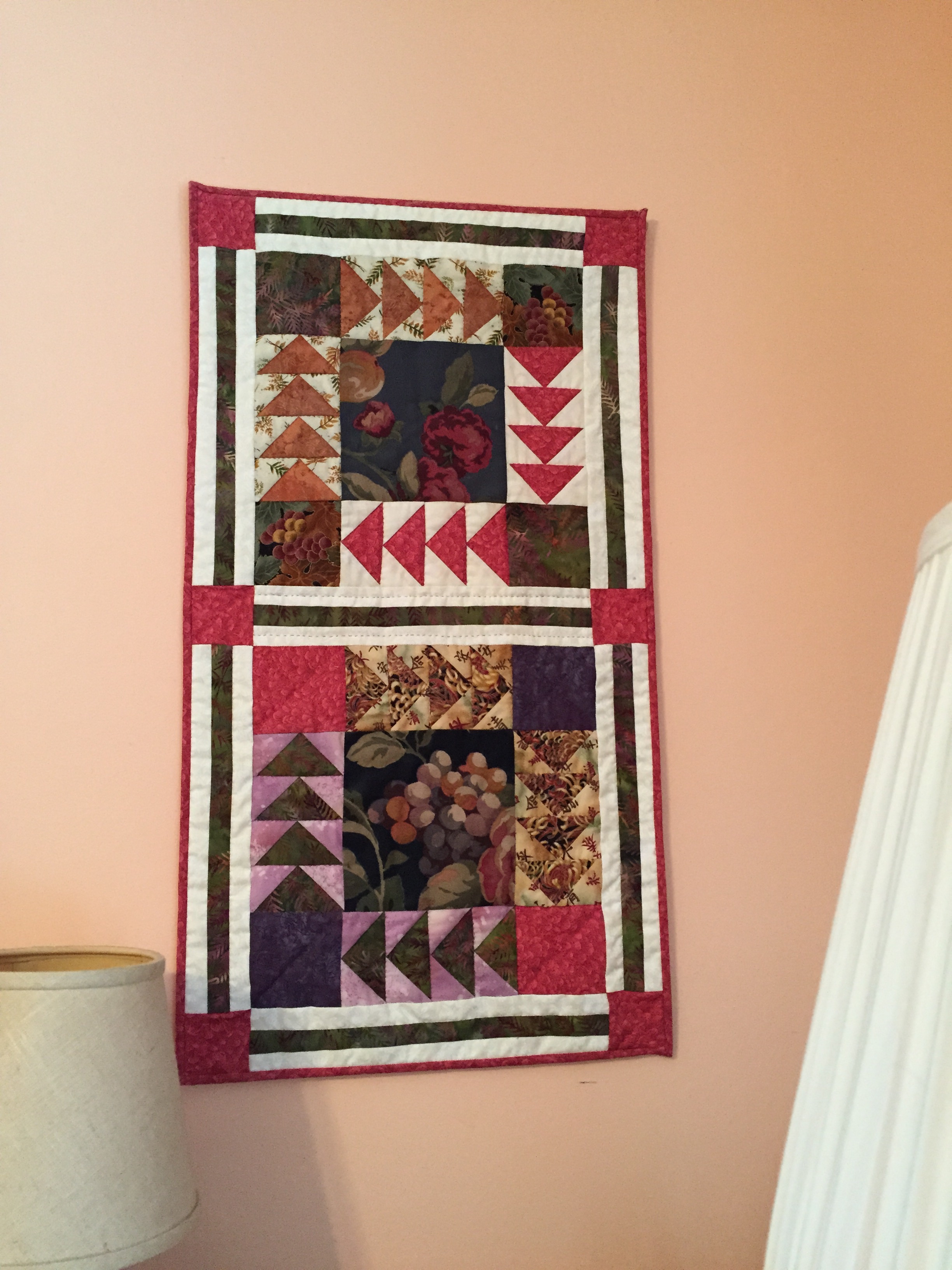 I love the bee fabric on the back. Its from the Sarah Watts collection, Magic Forest. Bees are beloved in m;y family. My DIL Tami Enright runs the Bee Cause project that originated in South Carolina and that seeks to save the bees by placing them in places where they can thrive or where people can observe them and learn about them. She now has hives in all 50 states. See thebeecause.org for more information.