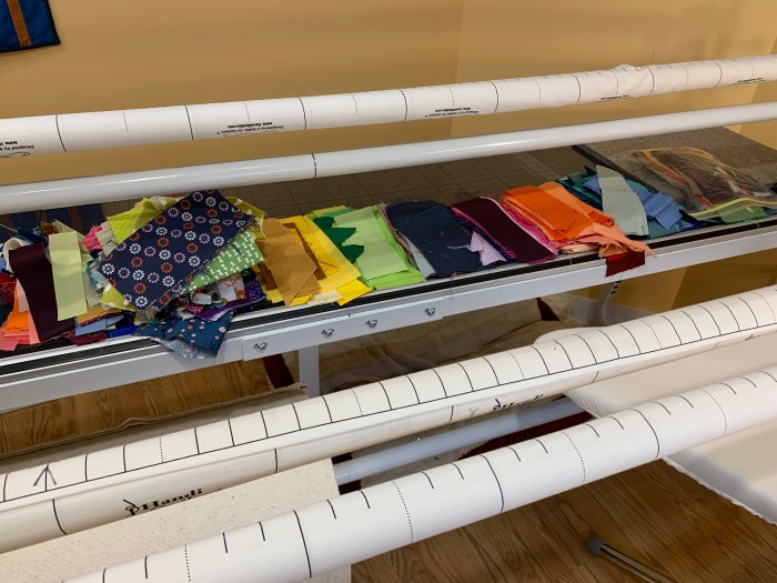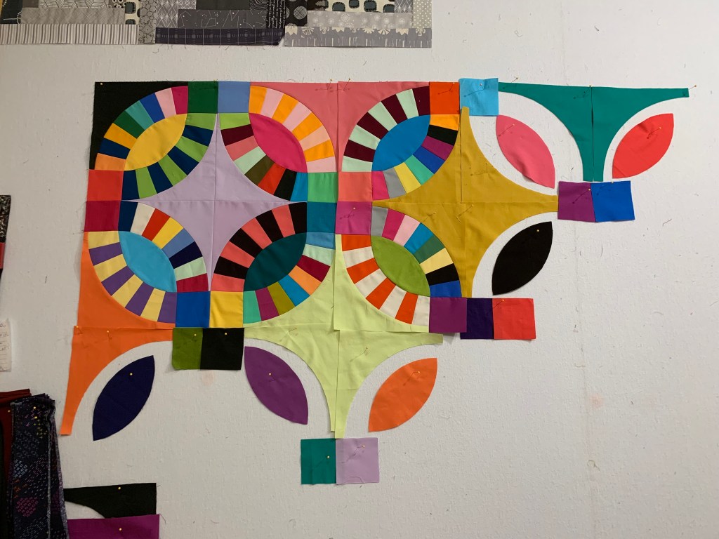 To remind, this is Tara Faughnan’s wedding ring quilt pattern, and Tara Faughnan is also the designer for 7-month The Color Collective online class hosted by Amy Newbold at Sewtopia. Indeed, season 4 starts TODAY, and, LOL, my fabrics are washed and ironed for the first project, but the design wall is FULL of the log cabin quilt at the moment.