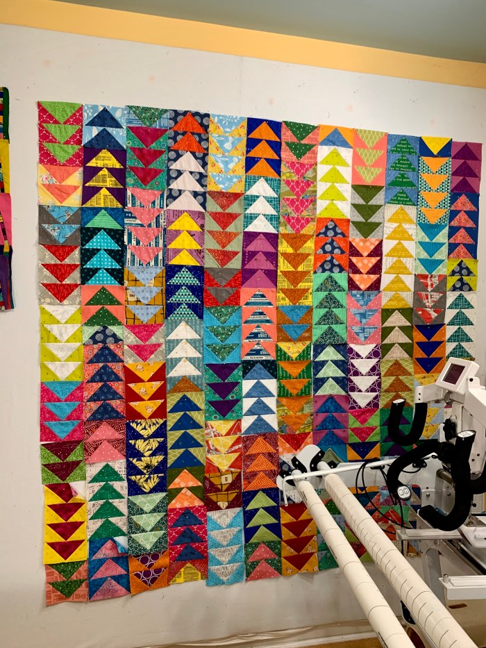 I LOVE this flying geese quilt and can’t wait to see it finished.