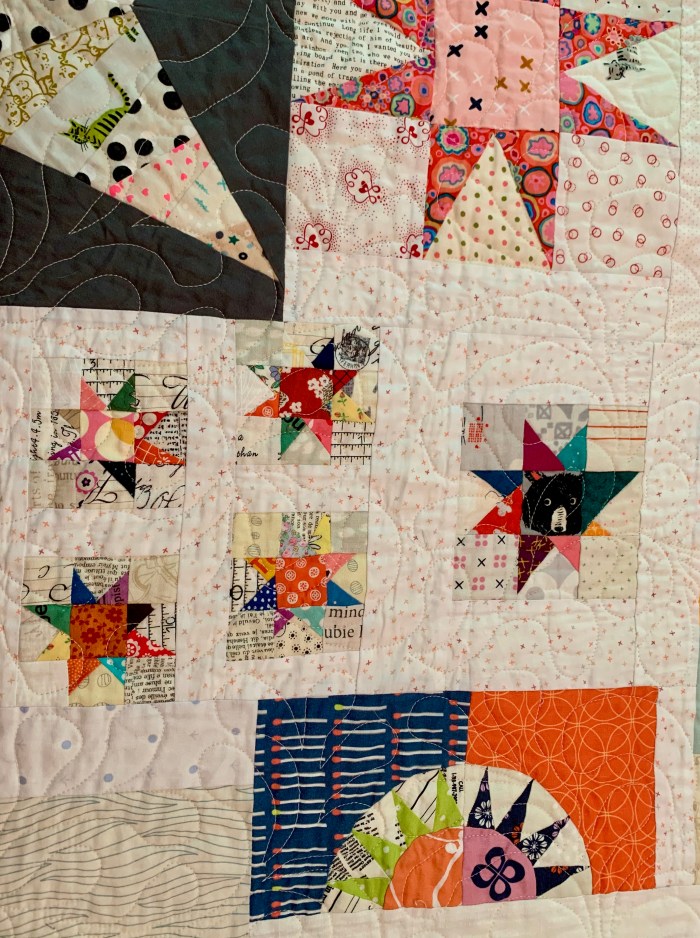 I love the bear’s face in one of the little stars. The bear is an old Cotton+Steel fabric. But the designers did take their fabric designs when they changed manufacturers, so maybe someday we’ll see this image appear again.