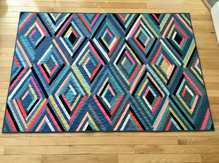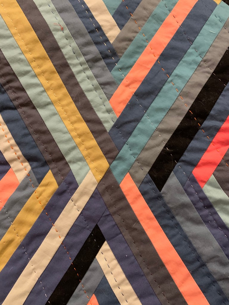 I’ll be layering and pinning the solid scrappy trip/granny quilt from Then Came June (Checkered Garden) today. I want to diagonal grid quilt it on a domestic, but will pin it on the longarm. I loved Then Came June’s version and thought it would be a good use for the solid scraps I have. It’s bright and wild. And maybe that’s it’s name?